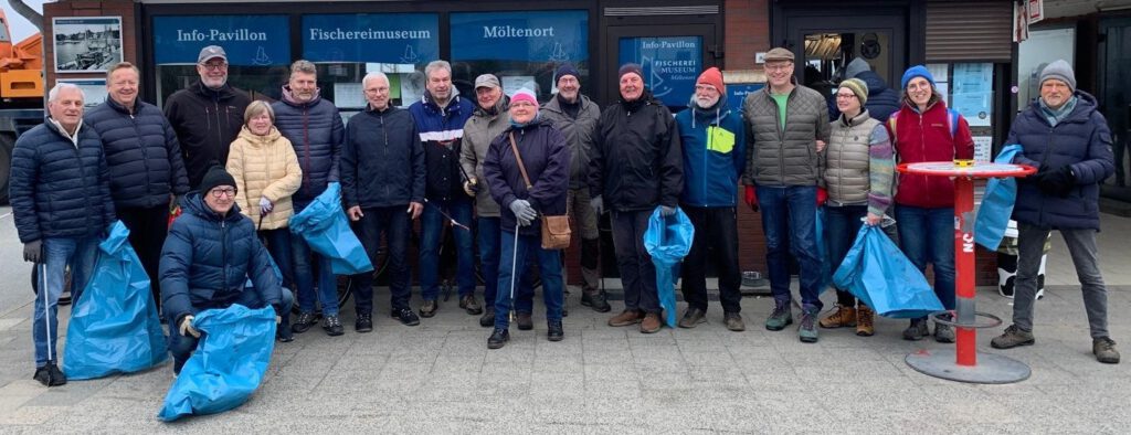 Am 21. März 2026 beteiligte sich unsere Gilde an der Aktion „Sauberes Dorf“. Der Treffpunkt war, wie jedes Jahr, vor der Möltenorter Dampferbrücke mit einer regen Beteiligung. Wir sammelten im Bereich Parkplatz Röhrskroog, Schröderstrand, Möltenorter Hauptstrand mit einer Unterbrechung beim Gildebruder Claus Gotzian zum Imbiss sowie Getränken ( vielen Dank an Imke für die Zubereitung der Schnittchen und Kaffee ) und gingen dann am Campingplatz vorbei, durchs Waldgebiet Korügen zum Betriebshof. Hier gab es für alle Helferinnen und Helfer Erbsensuppe und veganes Chili sowie Getränke, gesponsert vom Bürgermeister.